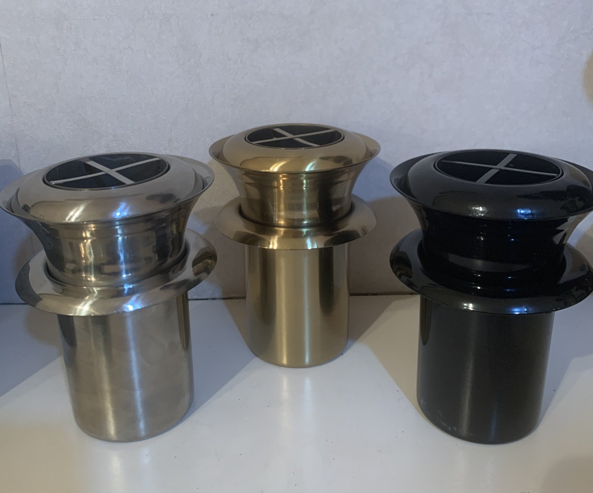 Flower vases come in Aluminium, Gold, or Black. These vases are more weighted than usual to handle all weather conditions.