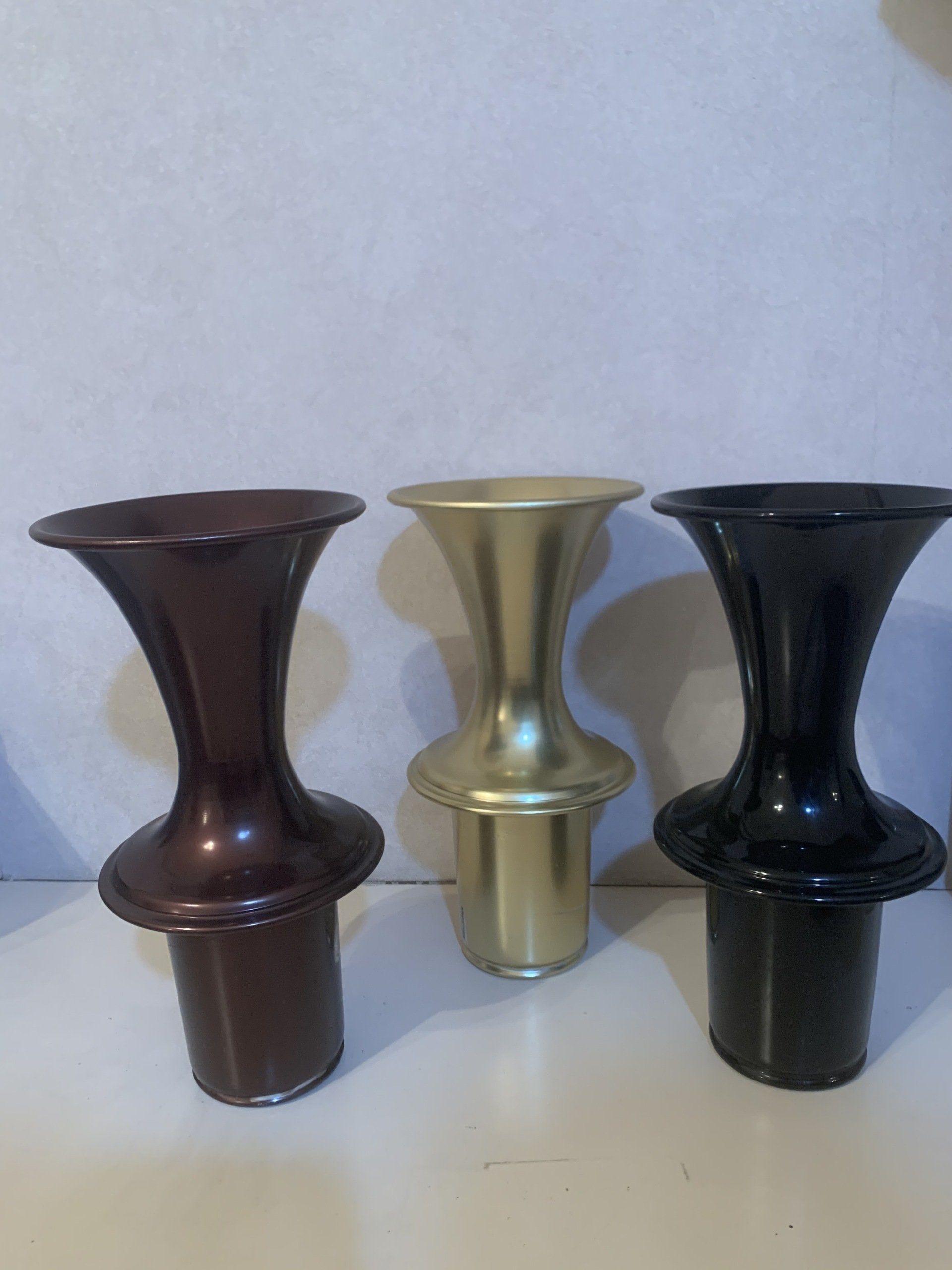 Flower vases in the trumpet version come in Gold, White, Bronze, or Black.